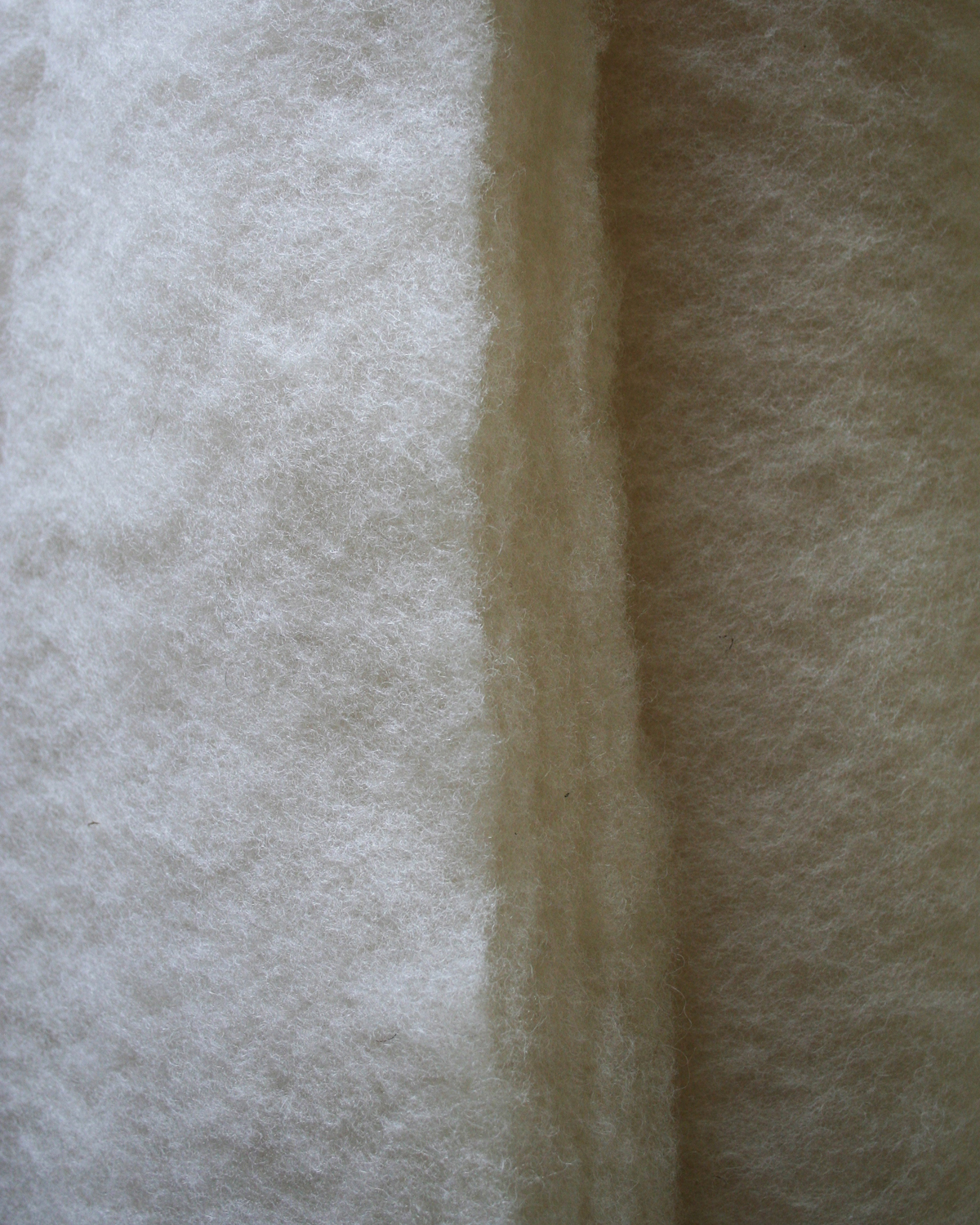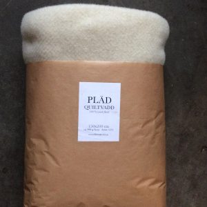 Sy ditt eget sovtäcke med ullvadd av 100 % svensk fårull Filtmakeriets ullvadd består av 100 % svensk texelull. Ullen är sorterad, tvättad och kardad. Hela processen sker i Ullspinneriet, Kilafors Hälsingland. Ullvadden är tänkt att användas till fyllning i sovtäcken, kuddar och madrasser och som mellanlägg vid vaddstickning och quiltning. Ullvadden är 150 cm bred och ca 5 cm tjock. Den är volymrik, mjuk, följsam och rolig att arbeta med, den kan användas i enkelt och dubbla i täcken eller flerdubbla lager i kuddar m.m. Många lager ger ökad volym och vikt för dem som vill ha tunga bäddtextilier.…